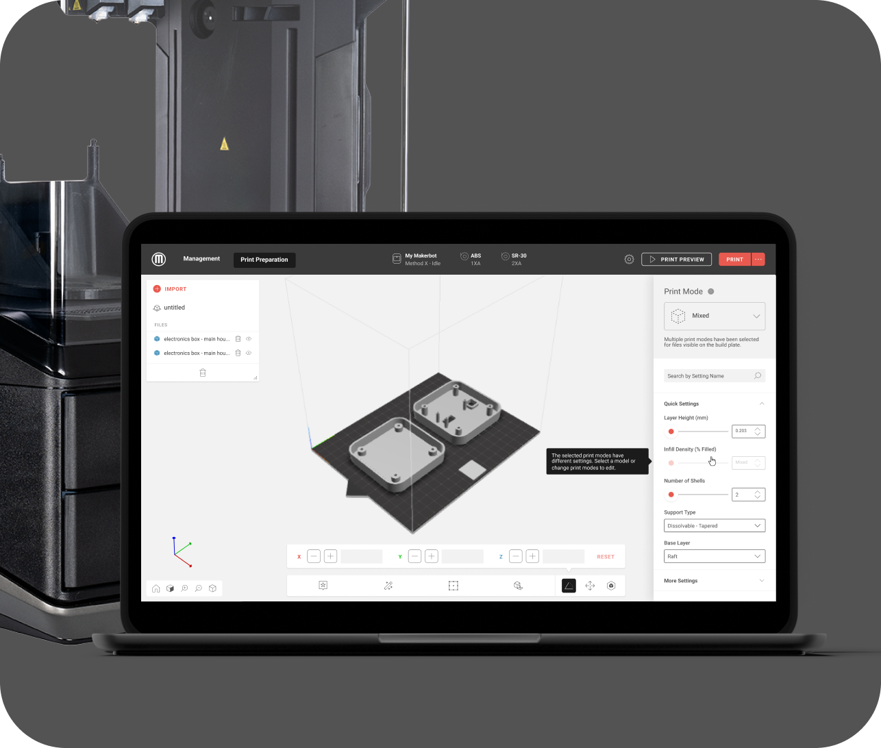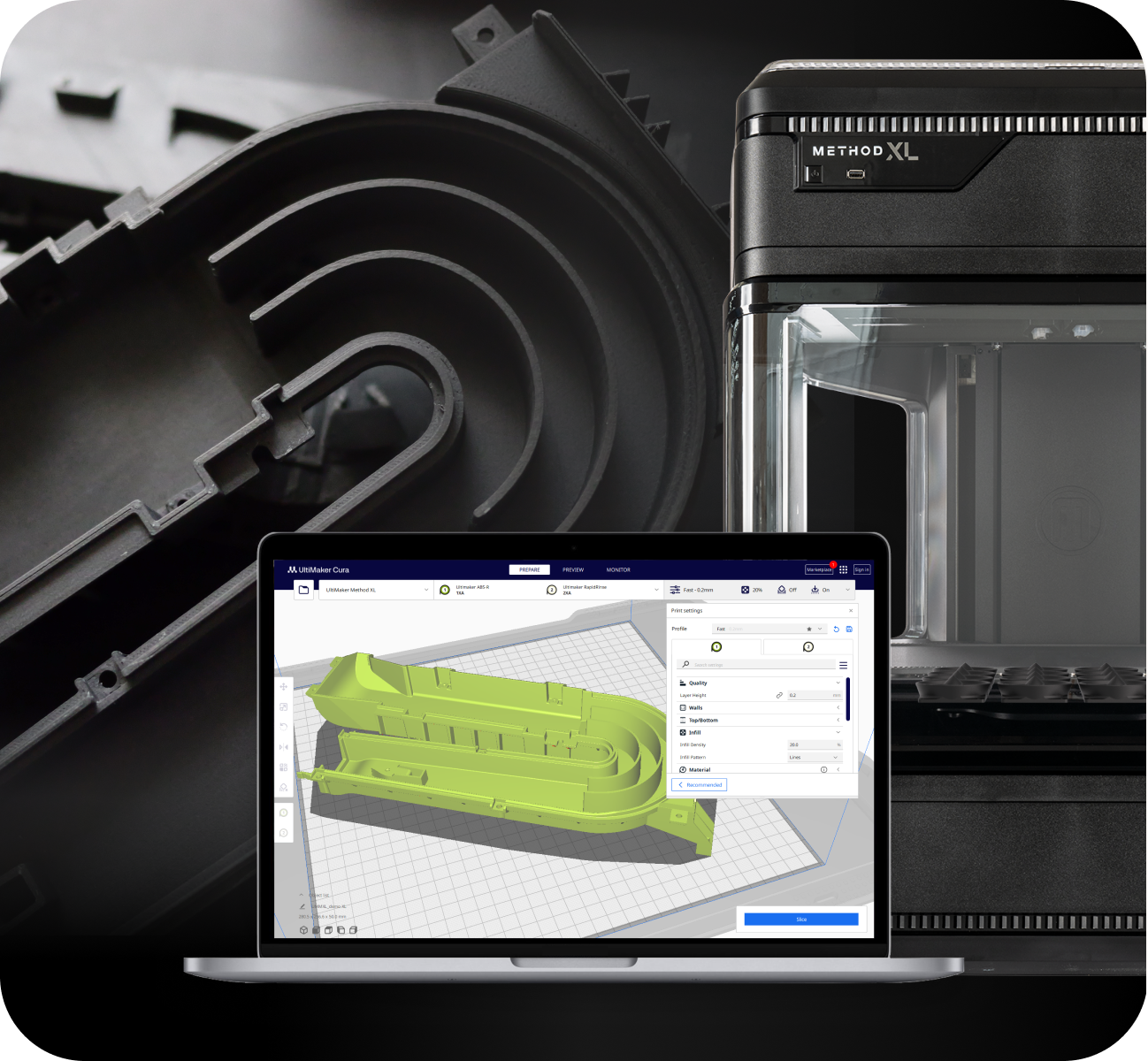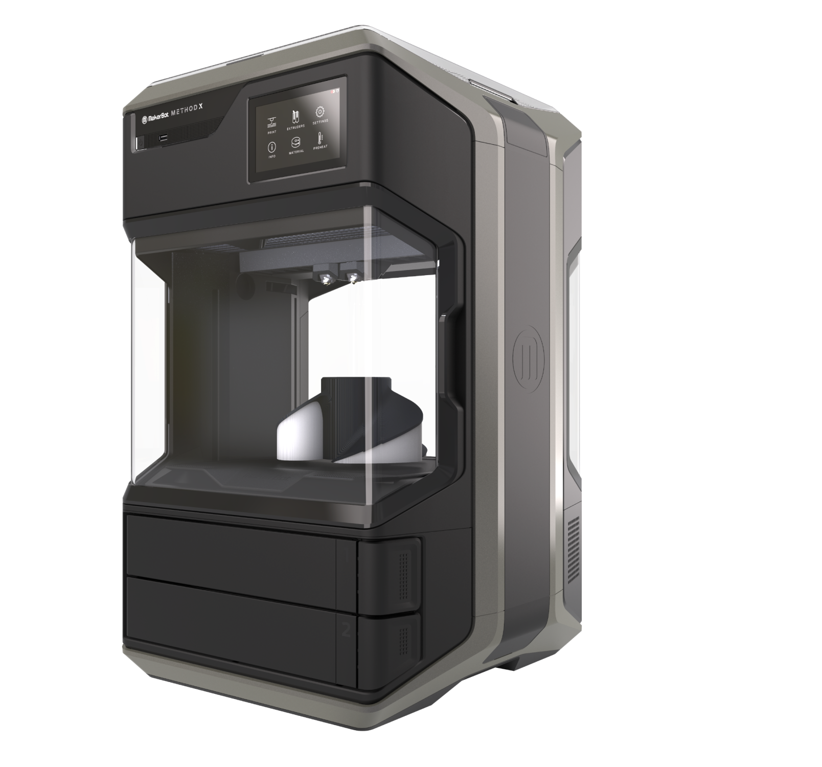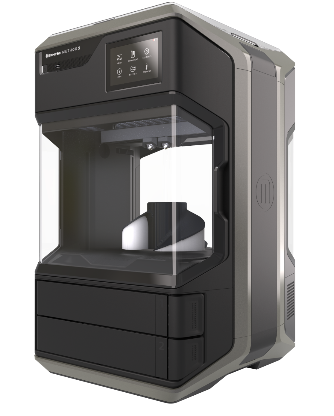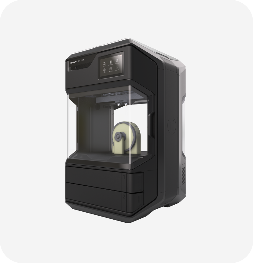 Thermal Regulation evenly heats and controls the print environment leading to parts that are 2x stronger on the z-axis, and 2x more accurate across the board.