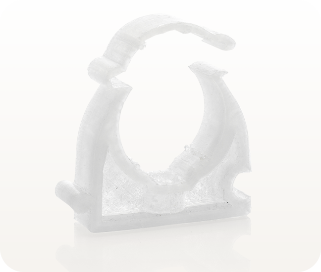 UltiMaker PP for S series has high fatigue resistance and does not break when repeatedly bent. Clamps and living hinges can remain functional for the lifetime of the printed part.