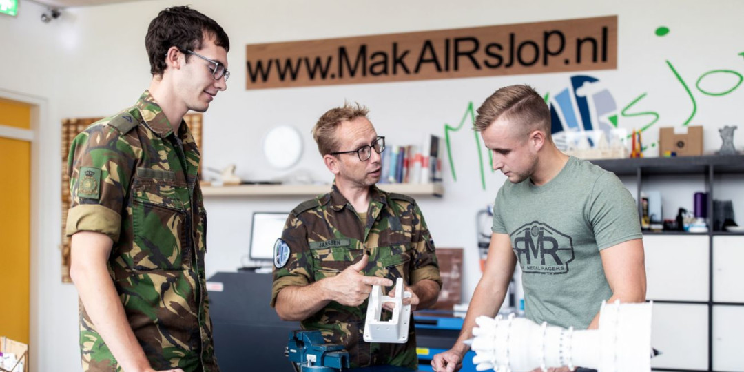 Bas Janssen, member of the Ambition Innovation Results (AIR) division, focuses on gaining and sharing knowledge on manufacturing techniques like laser cutting and 3D printing, as well as other technologies. He does this by running a makerspace within the Royal Netherlands Air Force: the MakAIRsJop.